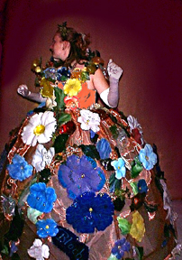 5' h x 5' w' 4' 8"h welded steel armature, copper mesh, glass flowers.